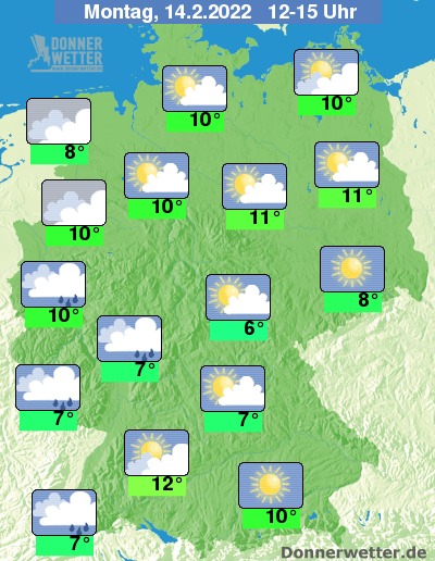 Heute Nachmittag zeigt sich über der Osthälfte Deutschlands häufig die Sonne und es ziehen hier meist nur lockere Wolkenfelder durch, dazu bleibt es trocken. Weiter nach Westen hin ist es zunehmend dicht bewölkt und gebietsweise fällt auch Regen. Die Temperatur liegt bei 6 Grad im Vogtland und um 12 Grad in Schwaben.
