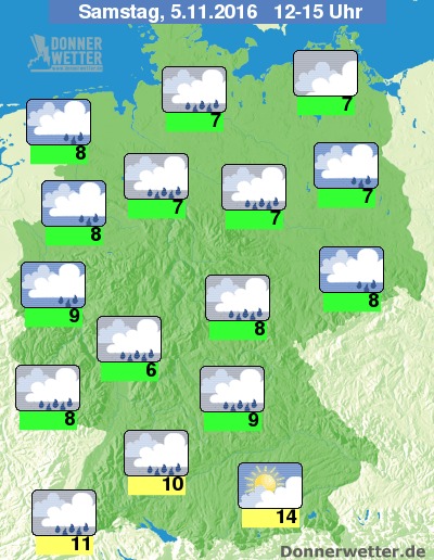 Heute Nachmittag sind nur im Südwesten des Landes einige Auflockerungen zu erwarten, dabei bleibt es hier auch weitgehend trocken. Im großen Rest von Deutschland hält sich dagegen dichte Bewölkung und es fällt immer wieder, zum Teil auch langanhaltender Regen. Die Temperatur steigt verbreitet nur auf 6 bis 10 Grad, am Alpenrand sind jedoch nochmal etwa 14 Grad C möglich.