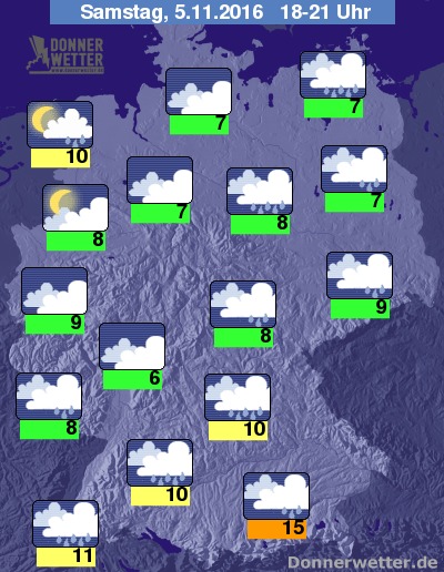 Heute Abend bleibt es verbreitet bei einer dichten Bewölkung und im Osten und Süden fällt zeitweise weiterer Regen. Weiter nach Nordwesten hin ist es zwar noch oft stark bewölkt, jedoch bleibt es hier weitgehend trocken. Dazu sind im Nordwesten und später auch im Westen auch Aufklarungen möglich. Die Temperatur liegt meist bei 6 bis 10, in München anfangs noch bei bis zu 15 Grad C.
