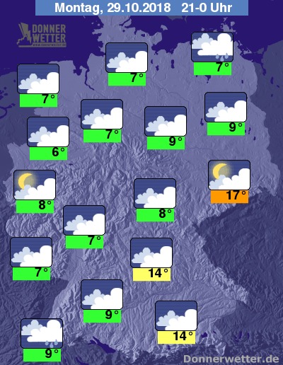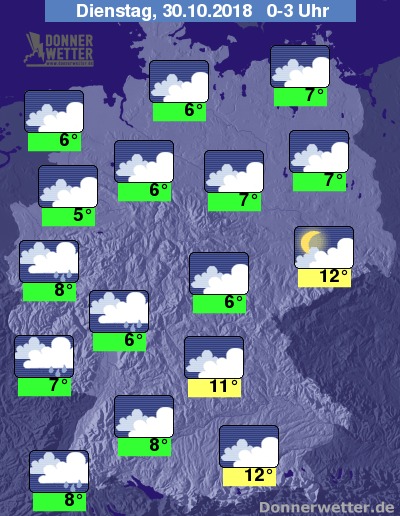 In der Nacht zeigt sich der Himmel überwiegend bewölkt, eine geschlossene Wolkendecke hält sich häufig über dem Nordwesten und an den Küsten auf. An der Ostseeküste können im Nachtverlauf auch einzelne Schauer fallen, sonst bleibt es meist trocken.