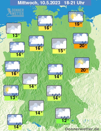 Heute Abend bleibt es weiterhin oft stark oder dicht bewölkt. Auflockerungen sind vor allem im äußeren Westen und Südwesten möglich. Auch in den östlichen Landesteilen kann sich die Sonne zeigen. Gebietsweise fällt jedoch Regen. Die Temperatur liegt bei 12 Grad in Augsburg und bis 20 Grad in in Berlin.