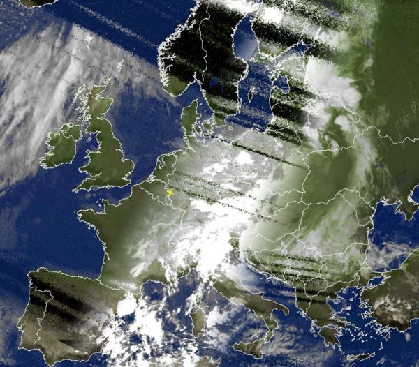 Auf dem Satellitenfoto von heute Morgen sehen wir über dem westlichen Mittelmeer oft hochreichende Quellbewölkung, die dort für zum Teil kräftige Schauer und nicht selten auch schwere Gewitter sorgt.