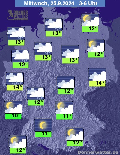 Die Temperaturen gehen in den frühen Morgenstunden zurück auf Werte um 14 bis 11 Grad.