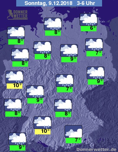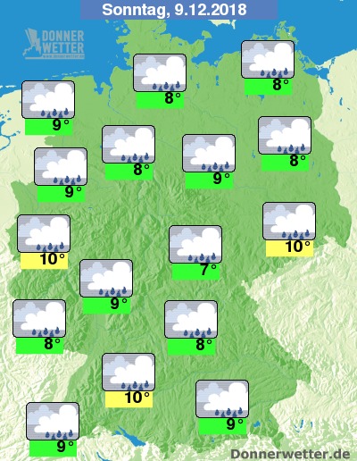 Am Sonntag halten sich verbreitet dichte Wolken, dabei fällt zeitweise, teils auch kräftiger Regen. Die Temperatur steigt auf milde 7 bis 10 Grad. Es weht ein oft starker bis stürmischer Wind.