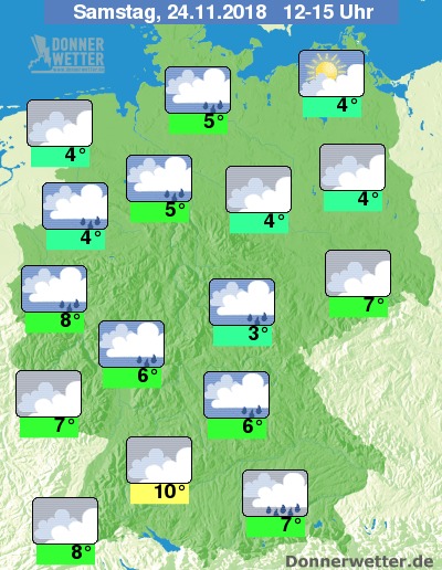 Heute Nachmittag bleibt die Wolkendecke überwiegend geschlossen und Auflockerungen bleiben eher die Ausnahme. Über dem Westen und Süden fällt zeitweise Regen, während es es weiter nach Nordosten hin zumeist trocken bleibt. Die Temperatur liegt bei 3 Grad im Thüringer Becken und 10 Grad in Stuttgart.