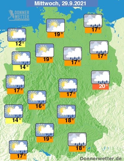 Am Mittwoch ist es vor allem im Süden und Osten meist stark bewölkt und hier bilden sich gebietsweise Schauer. Im übrigen Bundesgebiet ist es teils heiter, teils aber auch stark bewölkt, dabei bilden sich nur vereinzelte Schauer. Die Temperatur erreicht 12 Grad an der Nordsee und bis 20 Grad in der Lausitz.