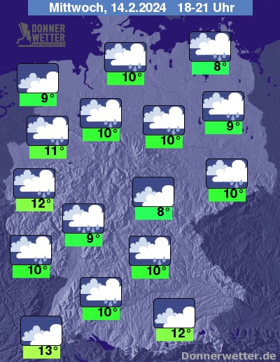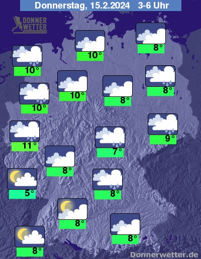 Am Donnerstag bringen dichte Wolken dem Norden, Nordwesten und Westen gebietsweise Regen. Vor allem im Süden kann sich zwischen den Wolken auch häufiger die Sonne zeigen. Im übrigen Land ist es eher stark bewölkt, aber ebenso trocken. Die Temperatur steigt auf 11 Grad in Vorpommern und bis 16 Grad im Breisgau.