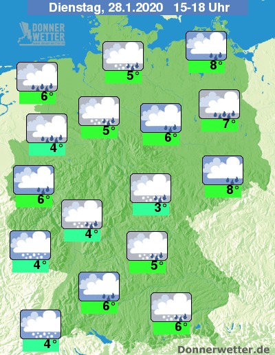 Die Temperaturen bewegen sich zwischen 3 und 8 Grad, am mildesten wird es von der Ostsee bis nach Sachsen.