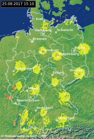 Die ersten Schauer formieren sich aus Belgien und Frankreich. Es dürfte im Westen jetzt bald losgehen. Also Radar checken und schauen wann sich dunkle Wolken nähern, besonders die Vorschau hilft : http://donnerwetter.de/radar/