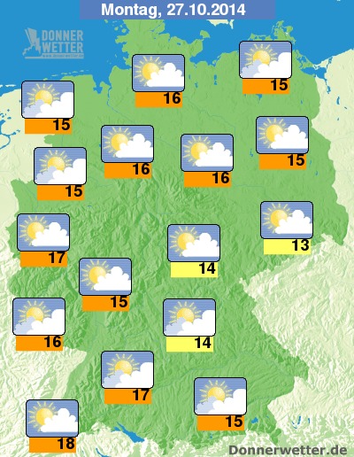 Die neue Wetterwoche startet dank Hochdruckeinfluss schon verbreitet freundlich und trocken, es ziehen meist nur lockere Wolkenfelder durch, vor allem nach Norden können die Wolken aber auch schon mal zahlreicher sein. Die Temperaturen steigen auf milde 13 bis 18 Grad.