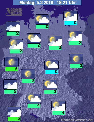 Heute Abend halten sich im Südwesten und an der Nordsee zum Teil dichte Wolken, sonst ist es hingegen meist nur locker bewölkt oder sternenklar. Es bleibt trocken bei Werten zwischen 0 und 5 Grad.