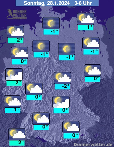 Die Temperaturen gehen in den frühen Morgenstunden auf Werte um 2 bis -2 Grad zurück.