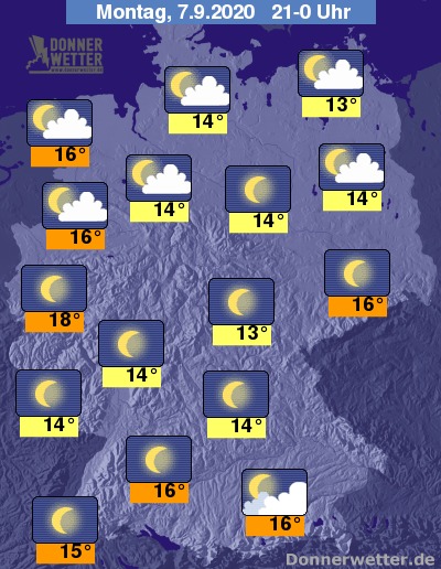 Die Temperaturen sinken in den späteren Abendstunden auf Werte um 18 Grad in der Kölner Innenstadt und um 13 Grad auf Usedom ab.