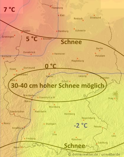 Am Freitag halten die Schneefälle weiter an. Nur in Nordseenähe fällt Regen. Die Sonne zeigt sich höchstens in kurzen Unterbrechungen. Zudem bleibt es landesweit stürmisch. Die Höchstwerte liegen zwischen 0 und 6 Grad.