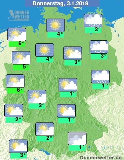 Die Temperaturen erreichen 6 Grad C im Ostfriesland und 1 Grad C um München.