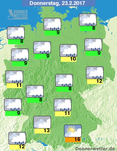 An den Küsten bekommen wir 8 Grad C und in Oberbayern milde 16 Grad C.