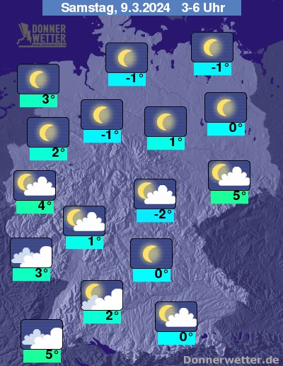 Die Temperaturen gehen in den frühen Morgenstunden zurück auf Werte um 5 Grad im Osten Sachsens und -2 Grad in Erfurt.