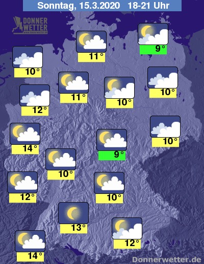 Heute Abend ist es im Norden und Osten oft stark und teils aufgelockert, im übrigen Land hingegen größtenteils locker bewölkt. Es bleibt überall trocken bei milden Werten zwischen 9 und 14 Grad.
