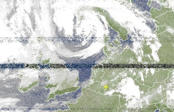Unser Satbild von heute Vormittag zeigt den Tiefdruckwirbel über der Nordsee eindrucksvoll.  Der Wettereinfluss ist aber begrenzt (hauptsächlich SH):