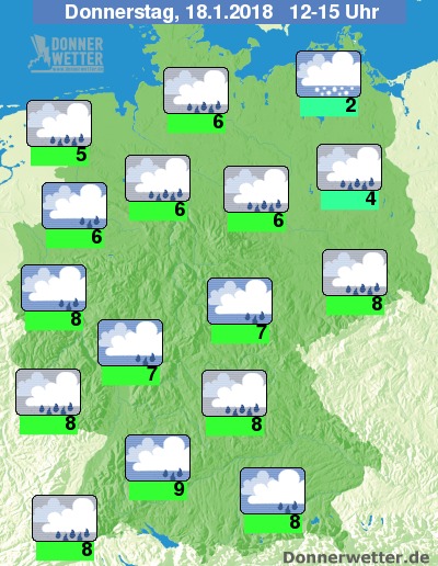 Im Verlauf des Nachmittags zieht "Friederike" dann weiter ostwärts und am Abend ist dann vor allem in Sachsen und Thüringen mit Windgeschwindigkeiten von über 100 km/h zu rechnen.