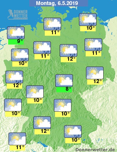 Zum Wochenstart erwarten uns erneut viele Wolken und vor allem nachmittags bilden sich über dem Norden und Westen wiederholt Schauer, im übrigen Land bleibt es hingegen meist trocken. Die Temperatur steigt auf 9 Grad in Wilhelmshaven und bis 12 Grad in der Lausitz.