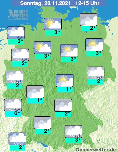 Heute Nachmittag hält sich verbreitet starke bis dichte Bewölkung, oft ist es zudem neblig-trüb. Auflockerungen sind am ehesten im Norden möglich. Im Westen, Süden und über Sachsen fällt gebietsweise Schnee oder Schneeregen. Im übrigen Bundesgebiet bleibt es hingegen meist trocken bei 1 Grad am Westerwald und etwa 3 Grad an der Nordsee.