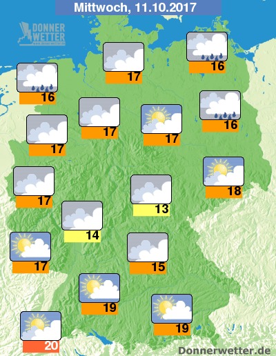 Vor allem über die Nordhälfte ziehen dichtere Wolken hinweg. Ganz im Norden fällt dabei gelegentlich etwas Regen oder Sprühregen. Sonst gibt es nach Auflösung örtlicher Nebelfelder eine Mischung aus kurzen sonnigen Phasen und Wolken. Im Südwesten und Süden scheint nachmittags auch längere Zeit die Sonne. Die Höchsttemperaturen klettern auf Werte zwischen 13 und 20 Grad, wobei die höheren Werte am Ober- und Niederrhein zu erwarten sind. Der Wind bläst im Norden und in der Mitte zeitweise spürbar und kommt aus Südwest. Im Süden ist er meist nur schwach bis mäßig.