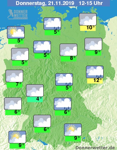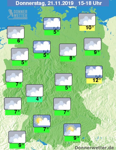 Die Temperaturen bewegen sich zwischen 4 Grad im Rhein-Main-Gebiet und 12 Grad in Teilen von Sachsen.