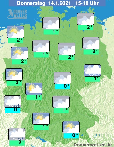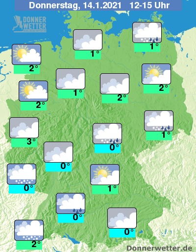 Bis zum frühen Abend fällt von der Saar bis zum Schwarzald und Bodensee noch Schnee oder Schneeregen, auch im Stau des Erzgebirges rieseln noch Flocken. In den übrigen Gebieten bleibt es teils stärker bewölkt, teils aufgelockert.