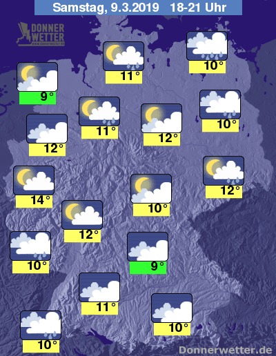 Heute Abend ist es teils stark, teils aber auch aufgelockert bewölkt. Besonders im Nordosten fällt noch zeitweise Regen, während entlang des Rheins im weiteren Verlauf neuer Regen aufzieht, sonst bleibt es zumeist trocken. Die Temperatur liegt bei 9 Grad an der Nordsee und bis 14 Grad in Köln. An den Küsten weht noch ein oft stürmischer Wind.