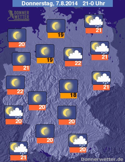Heute Abend reißt der Himmel von Westen her verbreitet auf und die Sterne können sich vielfach zeigen. Im äußeren Osten und Süden bilden sich dagegen bei häufig dichter Bewölkung weitere Schauer und Gewitter. Bei Temperaturen um 22 Grad am Mittelrhein und etwas kühleren 18 Grad am Thüringer Schiefergebirge können wir den Abend im Großteil von Deutschland draußen genießen.