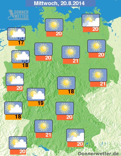 Am Mittwoch ist es vielfach heiter, vor allem in der Südosthälfte auch gebietsweise sonnig. Am Nachmittag und Abend bilden sich bevorzugt im Westen und Nordwesten mögliche Schauer, sonst bleibt es überwiegend trocken. Die Temperatur steigt auf 17 Grad in Ostfriesland und 21 Grad in Magdeburg.