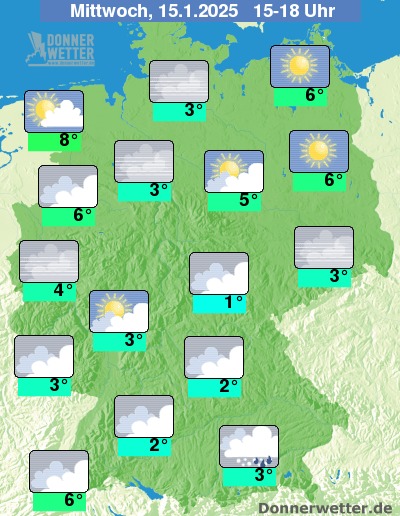 Am Mittwochnachmittag zeigt sich der Himmel meist stark bewölkt oder es ist neblig-trüb, dabei fällt vor allem an den östlichen Mittelgebirgen und an den Alpen noch etwas Regen oder Sprühregen, teils auch gefrierend. Auflockerungen sind heute am ehesten im Nordosten sowie im Südwesten zu erwarten.