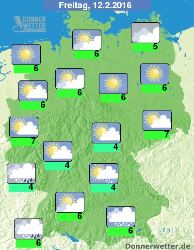 Heute fällt im Südosten Deutschlands anfangs zeitweise Schnee, im Nordosten fällt bei oft dichten Wolken gebietsweise Regen oder Schnee. Im übrigen Bundesgebiet ist es zumeist aufgelockert, zum Teil auch locker bewölkt und es bleibt trocken. Gegen Abend werden die Wolken im Südwesten dichter und es kommt Regen, Schneeregen oder Schnee auf, dabei besteht Glättegefahr! Die Temperatur steigt auf 4 Grad im Grabfeld und bis 7 Grad im Rheinland.