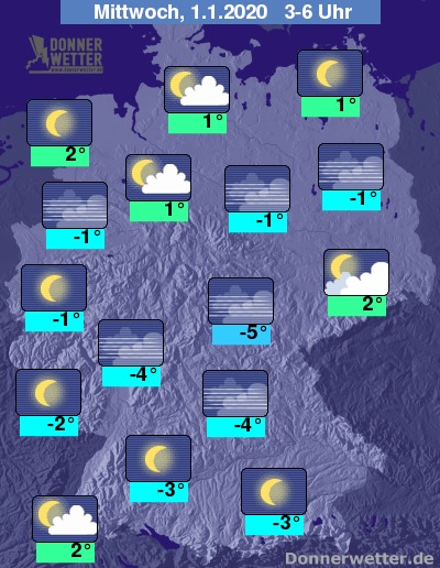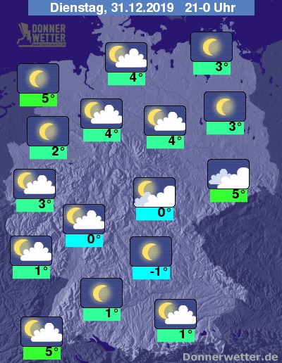 Während der Feuerwerkszeit bleibt es überall im Lande niederschlagsfrei. Mit Ausnahme regionaler Nebel- oder Hochnebelfelder, sowie dichterer Bewölkung hat man dabei einen oft freien Blick Richtung Sterne.