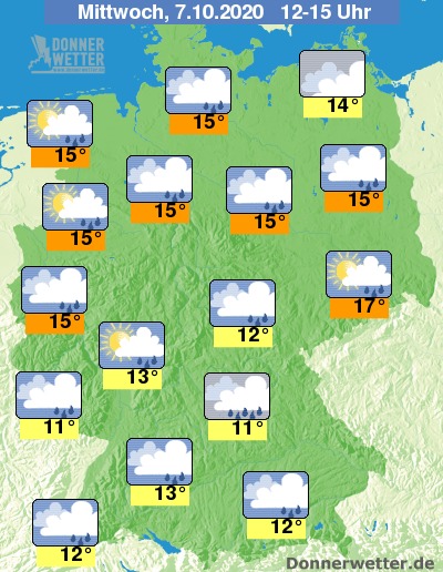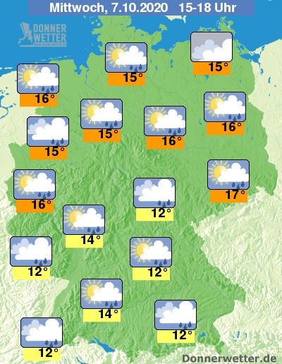 Am Nachmittag bleibt es abgesehen örtlicher Auflockerungen dicht bewölkt und es fällt zeit- und gebietsweise Regen, zum Teil schauerartig verstärkt, vereinzelt kann es auch mal blitzen und donnern. Lediglich in Teilen von Mecklenburg-Vorpommern bleibt es trocken.