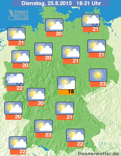 Am Dienstag Abend zeigt sich im größten Teil der Republik ein heiteres Wetter, teils auch mit Sonnenschein an. Besonders in Sachsen ist der Himmel frei von Wolken. Im Umkreis der NRW und an der Ostseeküste sind mit wechelhaften Schauern zu rechnen. Der Süden Deutschlands zeigt sich weiterhin heiter.