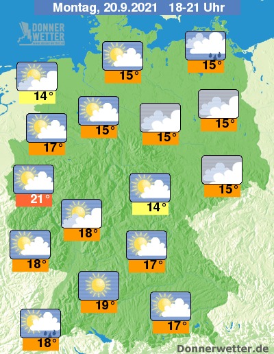 Heute Abend klingen letzte Schauer im Südwesten des Landes ab und es lockert und heitert auch hier weiter auf. Im Nordosten sind unter dichten Wolken einzelne Schauer möglich, auch im übrigen Norden und Osten ist es noch meist stark, hier und da aber auch aufgelockert bewölkt. Im übrigen Bundesgebiet ist es überwiegend heiter und dazu trocken. Die Temperatur liegt bei 14 Grad in Jena und bis 21 Grad in Köln.