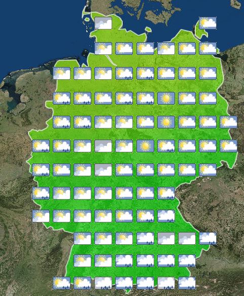Heute Nachmittag bleibt es vor allem im Süden noch verbreitet regnerisch. Dichte Wolken ziehen auch über weite Teile Westdeutschlands, dazu bilden sich einzelne Schauer. Im großen Rest des Landes scheint dagegen oft auch die Sonne und es ziehen meist nur lockere oder noch aufgelockerte Wolken durch, dazu bleibt es auch meist trocken. Die Temperatur liegt bei 12 Grad um München und bis 19 Grad in Berlin.