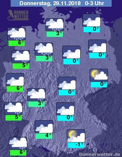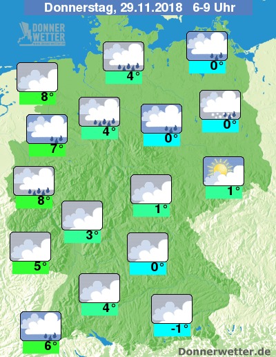 Der Donnerstag beginnt ebenfalls mit einer meist geschlossenen Wolkendecke. Die zum Teil kräftigen Schauer beschränken sich dann meist auf den Norden und Nordosten Deutschlands, entlang der Oder können die Niederschläge auch mal als Schneeregen- oder Schneeschauer fallen.