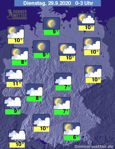 Die Temperaturen sinken in der Nacht auf Werte um 11 Grad im Rheinland und 6 Grad im Alpenvorland.
