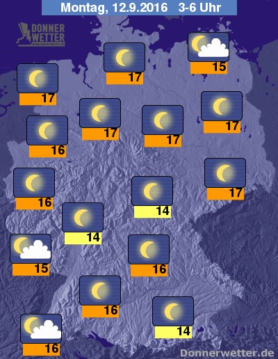 In der bevorstehenden Nacht können im Norden und im Südwesten anfangs hier und da lockere Wolken durchziehen, sonst zeigt sich der Himmel aber verbreitet sternenklar, dazu bleibt es trocken. Die Temperatur sinkt auf 17 Grad in Berlin und bis 14 Grad am Westerwald.