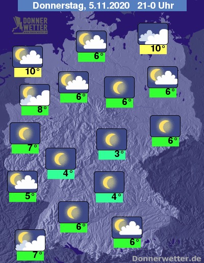Am Abend bleibt es klar oder nur leicht bewölkt. Lediglich im Nordseeumfeld ziehen dichtere Wolkenschleier vorüber.