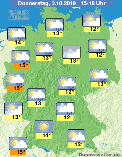 Im Laufe des Nachmittags kommen örtliche Schauer bis nach Hessen und ins nördliche Bayern voran. Ganz im Süden und Südwesten bleibt es jedoch meistens trocken.