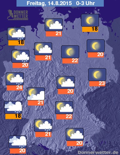 Im Süden und Osten startet der Freitag dagegen meist sonnig. Wo es schauert, steigen die Werte am Morgen auf 17 bis 19 Grad C, in Sachsen nähert sich das Quecksilber bereits in den Morgenstunden der 25-Grad-Marke an.
