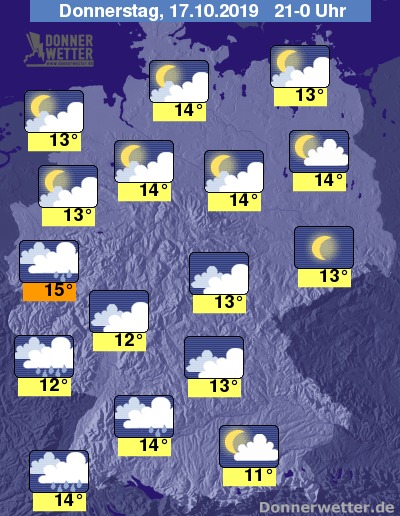Bis Mitternacht bleibt es im Südwesten eher regnerisch, sonst überwiegend niederschlagsfrei. Gebietsweise kann man Mond und Sterne beobachten.