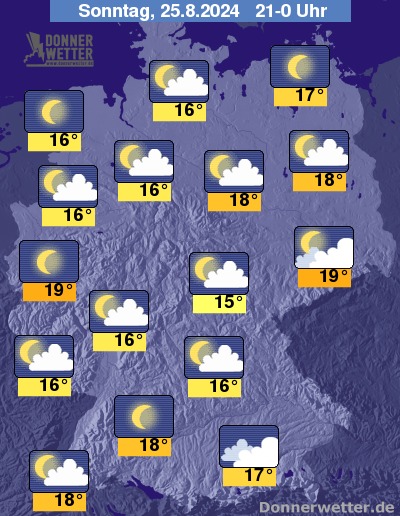 Die Temperaturen gehen in den Frühstunden zurück auf Werte um 15 bis 10 Grad.