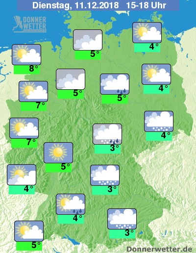 Die Temperaturen liegen zwischen 3 und 8 Grad, am kältesten bleibt es unter den dichten Regen- und Scheewolken, am mildesten wird es dank längerer sonniger Unterstützung im Nordwesten.