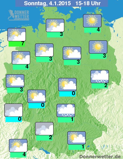 Heute Nachmittag halten sich sowohl im Süden und Südosten als auch in Teilen Sachsen meist dichte Wolken und hier kann es gelegentlich auch etwas schneien. In den anderen Landesteilen ist es dagegen vermehrt aufgelockert bewölkt und häufig auch heiter, dazu bleibt es auch weitgehend trocken. Die Temperatur steigt auf 0 Grad im Grabfeld und bis 7 Grad in Emden. An der See weht ein teils starker bis stürmischer Wind.