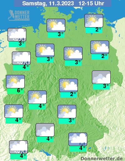 Heute Nachmittag zeigt sich häufig die Sonne zwischen den überwiegend lockeren bis aufgelockerten Wolken. Im Nordwesten sowie südlich des Mains bleibt es aber meist stark bewölkt und es fällt auch gebietsweise Regen oder Schnee. Im übrigen Land ist es weitgehend trocken bei 2 Grad im Vogtland und 6 Grad im Rheinland.